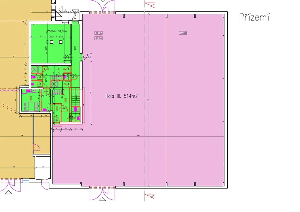 Nabízíme k pronájmu skladovou/výrobní halu o rozměru 514 m2 čisté skladové plochy. Výška haly je 7-8 metrů, vedou do ní 2 vrata dostatečně velké i pro kamion, podlahy jsou z litého betonu, ideální pro paletové vozíky. Hala je zateplená, má zabudovaný zabezpečovací systém, nové rozvody elektřiny a možnost připojení vysokorychlostního internetu. Před halou je prostor na nájezd kamionu. Další částí haly jsou také kancelářské prostory v patře, pro potřebnou administrativu a zázemí firmy. Součástí jsou také šatny, sociální zázemí a zařízená kuchyňka. Rozloha těchto prostor je 205 m2. Poslední část celku je ostatní venkovní skladová plocha o rozloze 119m2, kterou lze využít také na parkování vozidel. Služby jsou rozpočteny následovně: Elektřina-jistič (3x40A) - 1 669 Kč/měsíc; záloha na el. - 2 000 Kč/měsíc; Teplo-paušál - 4 900 Kč/měsíc; Voda-paušál - 700 Kč/měsíc. Zabezpečovací zařízení - 900 Kč/měsíc. Zabezpečovací systém je napojen na centralizovaný pult ochrany a součástí je kamerový systém. Vyhrazená parkovací místa pro osobní automobily před halou jsou za 500 kč/měsíc/auto. Doporučujeme osobní prohlídku, v případě zájmu či dotazů nás neváhejte kontaktovat.