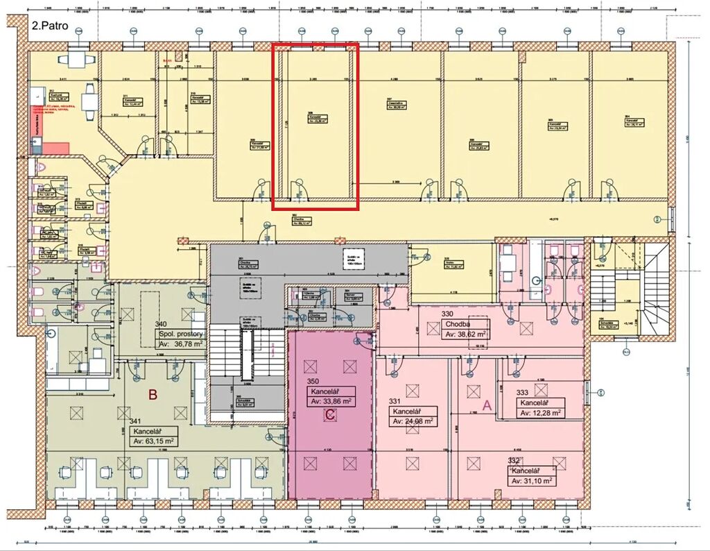 Nabízíme k pronájmu kancelář s celkovou plochou 23 m2. Prostor se nachází ve 3. nadzemním podlaží a je vhodná pro provozování kanceláře. Jde o nový prostor a v případě zájmu o větší celek lze rozšířit o další sekce. Na patře je společné sociální zázemí a kuchyně. Součástí je vlastní zabezpečovací systém. Možnost umístění reklamy v okolí domu a rovněž umístění sídla firmy na uvedené adrese. Kancelář se nachází v průmyslové zóně v Sedlištích a v areálu působí několik výrobních firem i administrativních celků. Součástí služeb je cena za teplo, vodu, elektřinu, zabezpečovací systém a kamerový dohled společných prostor a úklid příjezdové cesty. V případě zájmu je možno si také pronajmou parkování pro osobní automobily a internet, který je již zavedený na objektu.