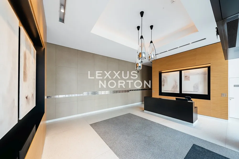 V 6. nadzemním podlaží nově postaveného bytového projektu s výtahem, ostrahou a recepcí se nachází tento reprezentativní, plně zařízený byt 1+kk k pronájmu o celkové ploše 57 m2. Moderní interiér zahrnuje vstupní halu, kuchyni, vzdušný obývací pokoj s jídelním a kuchyňským koutem a přímým vstupem na balkon o velikosti 10 m2 a koupelnu. Obývací pokoj je doplněn prakticky oddělenou ložnicovou zónou. Součástí bytu jsou také garážové parkovací stání a sklep.