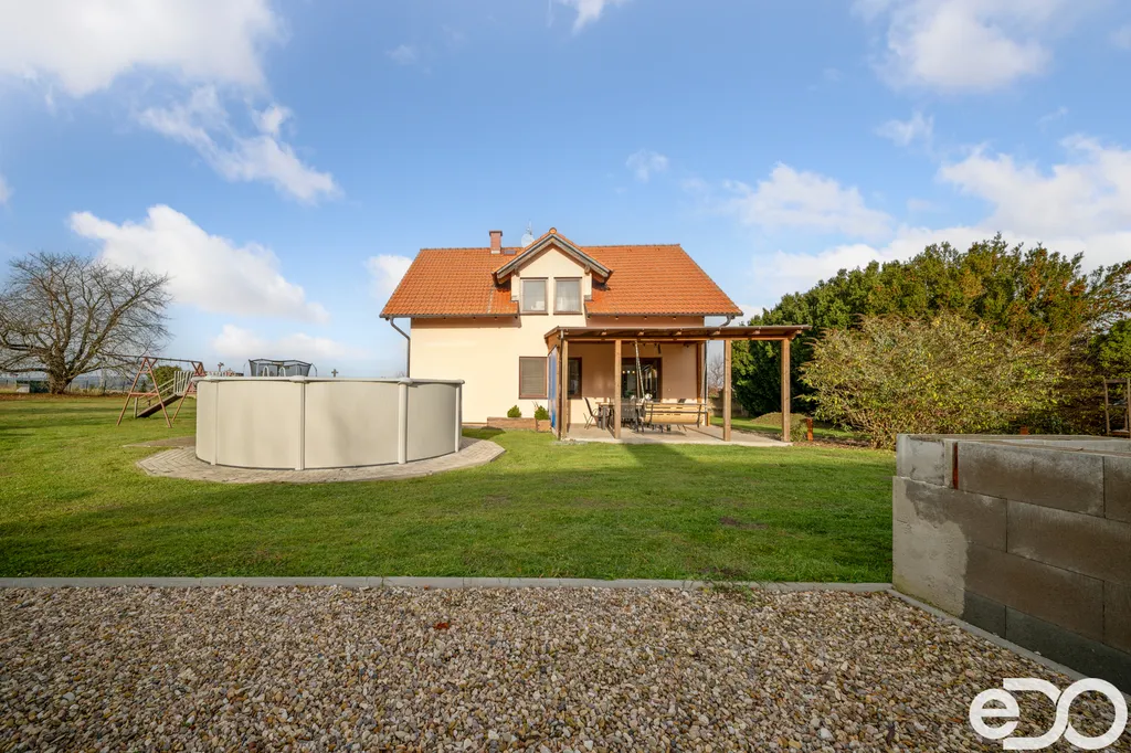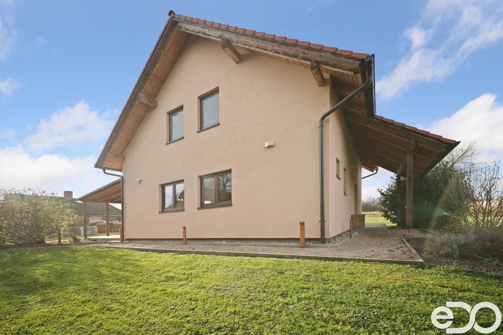 Dominantou pozemku je moderní dřevostavba s dispozicí promyšlenou do posledního detailu: