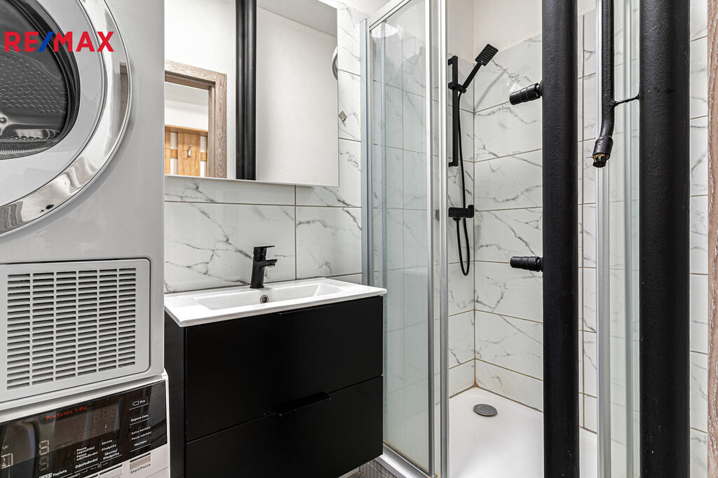 K bytu náleží také sklepní kóje (1,8 m²) a navíc uzamykatelný prostor o velikosti cca 6 m² k užívání.