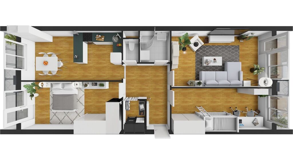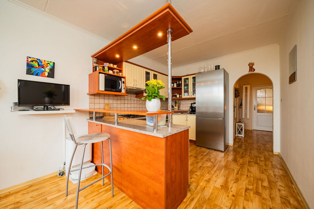 Byt je velmi praktický pro rodinu a může být pro Vás úžasným domovem. Byt prošel v minulosti rekonstrukcí, bytové jádro je nově vybudované cca před 3 roky, koupelna se sprchovým koutem a toaleta samostatná. Kuchyně je také samostatná s kuchyňskou linkou a jídelnou. Prostorný obývací pokoj má velký benefit vstupu na jednu z lodžií bytu. Dále jsou zde dvě samostatné ložnice, přičemž z jedné z nich je umožněn vstup na druhou lodžii bytu. Pro ranní kávu či večerní posezení si tak můžete libovolně zvolit jednu či druhou ze zmiňovaných lodžíí, což se popravdě nestává tak často. V chodbě bytu je vybudovaná komora jednoduchou úpravou se sádrokartonem, kterou můžete do budoucna upravit dle svých představ, ale jako praktický úložný prostor je skvělá. V suterénu domu náleží k bytu sklep.