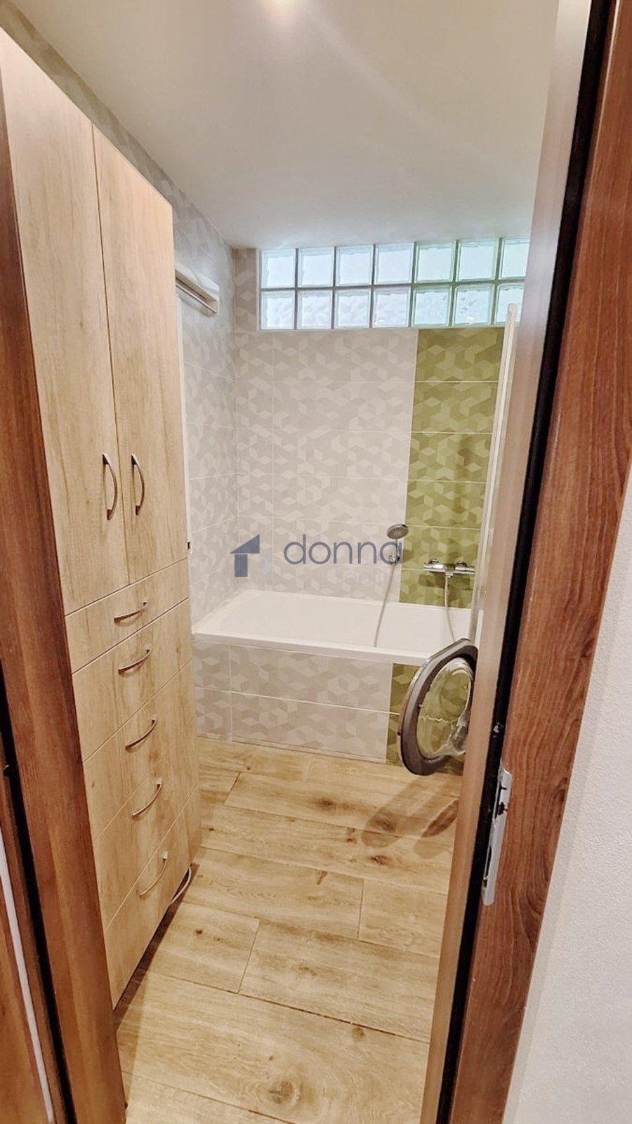 Chodba: vestavěná skříň, skříň ve vstupní chodbičce. Koupelna: vana, skříňky, umyvadlo, pračka, žebříkové topení.
