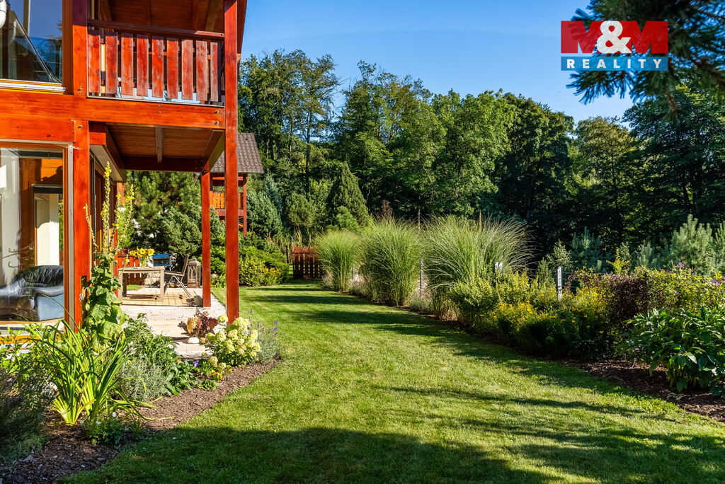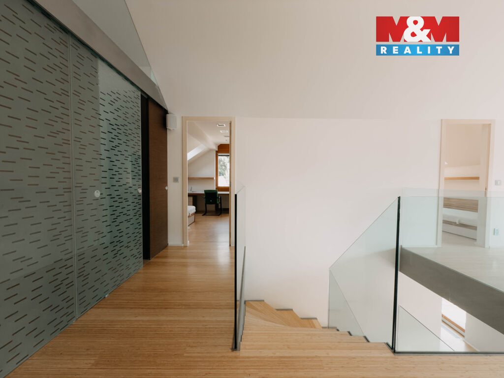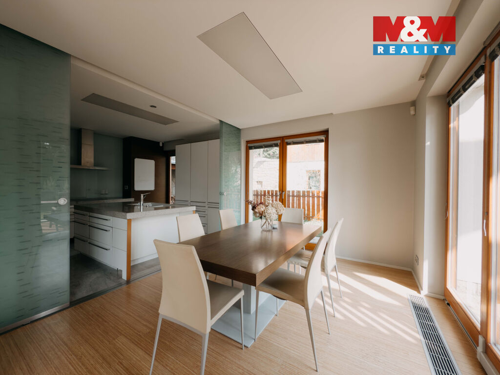 Nabízíme ke koupi výjimečný rodinný dům v alpském stylu, navržený architektem Martinem Sladkým, situovaný v klidné části Jablonce nad Nisou. Tato cihlová stavba se pyšní dvěma nadzemními a jedním podzemním podlažím, poskytující celkem 6 prostorných místností. Dům na pozemku o rozloze 750 m² nabízí užitnou plochu 300 m².Interiér je navržen s důrazem na přirozené světlo, což podtrhují celoskleněná zábradlí a prosklené podlahy. Přízemí slouží jako společenská zóna s obývacím pokojem, kuchyní, pracovnou a moderní koupelnou. Horní patro je určeno pro soukromý relax s ložnicí a dvěma pokoji s vlastními koupelnami. Suterén nabízí technické zázemí a úložné prostory. Terasa s výhledem do zeleně dotváří harmonické propojení s přírodou. Venkovní žaluzie zajišťují optimální osvětlení. K domu náleží zateplená dvojgaráž a prostor na kola a lyže. Dům je v perfektním stavu a čeká na nové majitele, kteří ocení jeho jedinečnost a kvalitu. Více informací sdělí makléř na prohlídce.