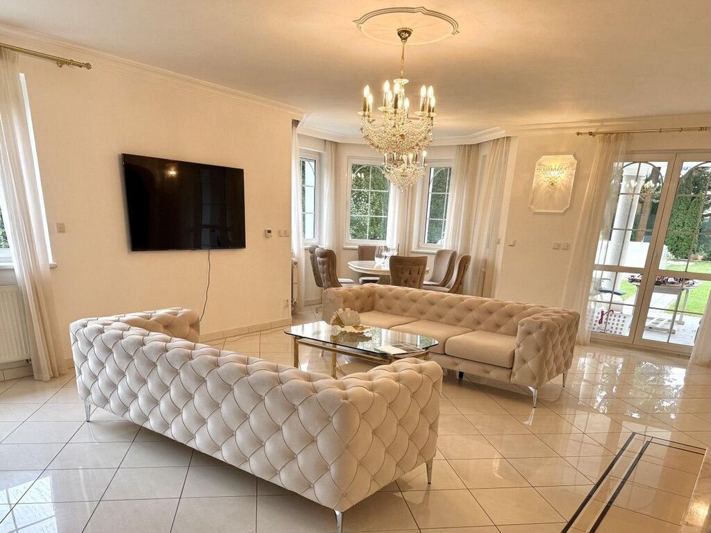 Výbava: Italsky mramor, vyhřívání podlahy, přírodní dřevěné parkety, zábradlí a ruční umělecké kování; systém automatického zavlažování zahrady; elektrické rolety, alarmy; masážní sprchy a vany atd.