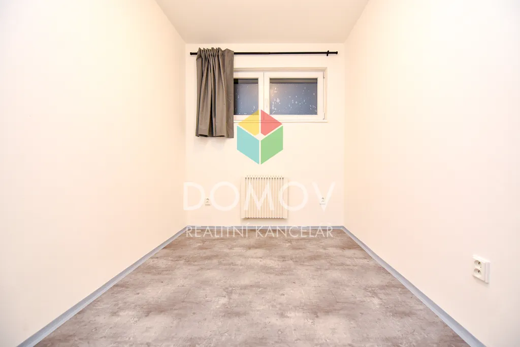 Topení je zajištěno elektrickými radiátory, ohřev vody elektrickým bojlerem. Podlahovou krytinu tvoří lina a dlažba. Velkým bonusem je balkón přístupný z obývacího pokoje. K bytu náleží sklepní kóje. Parkování je možné přímo u domu.