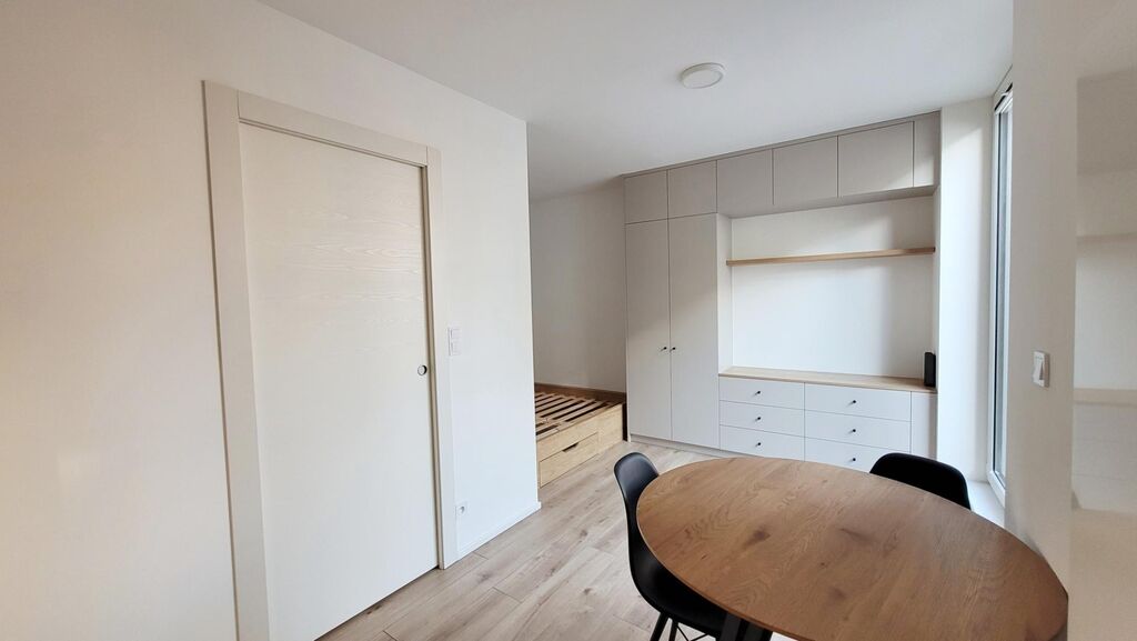 Exkluzivně nabízíme k pronájmu novostavbu bytu 1+KK o rozloze 33,88 m2 (obytná plocha 25 m2), který je součástí novostavby and #34;Bytový dům Strančická and #34; v atraktivní a klidné lokalitě Praha 10 - Strašnice. Jedná se o novostavbu, která je umístěná do klidného vnitrobloku, kolaudace 2025. Výborné minimalistické pojetí s vysokým důrazem na praktičnost a pečlivě vybíranými moderními, kvalitními materiály včetně vybavení viz. fotografie. Byt je vybaven kuchyňskou linkou se spotřebiči (lednice, horkovzdušná trouba, varná deska, digestoř, myčka, pračka a dále vestavěnými skříněmi v předsíni, nábytkem na míru včetně manželského dvoulůžka. Stačí přinést osobní věci a můžete bydlet. Ihned volné k nastěhování. Měsíční nájemné ve výši 16.490,- Kč + poplatky ve výši 3.250,- Kč (vodné, stočné, topení, odvoz odpadu, úklid společných prostor a také elektřina společných prostor a zdroj TV signálu) + převod elektroměru (záloha 1.000,-Kč) + internet (k dispozici optika Vodafone s až 1 GBit). Kauce ve výši dvojnásobku nájemného, provize ve výši jednoho nájmu + 21% DPH. Veškerá občanská vybavenost v blízkém okolí, dopravní obslužnost zajištěna četnými tramvajovými, autobusovými popř. metrem či vlakovými spoji. Více informací na vyžádání v RK.
