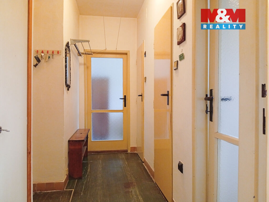 Nabízíme k prodeji světlý byt 2+1 o užitné ploše 53 m², nacházející se na okraji města Jirkov. Byt je situován ve 4.NP cihlového domu s celkovými 4 nadzemními a jedním podzemním podlažím. Disponuje třemi místnostmi, je v původním, avšak v udržovaném stavu, vhodný i jako investice k pronájmu. Plastová okna s orientací na jihozápad. Vytápění a ohřev teplé vody je řešen dálkovým rozvodem. K bytu náleží sklep 4 m2. Uvedená cena je včetně vybavení. Fond oprav činí 2085,- Kč. K bytu je možné dokoupit garáž, což je velkou výhodou pro majitele automobilu. Dům je zateplený, udržovaný. V blízkosti se nachází veškerá občanská vybavenost, včetně obchodů, škol a zdravotnických zařízení.