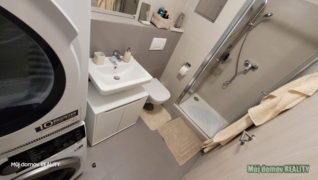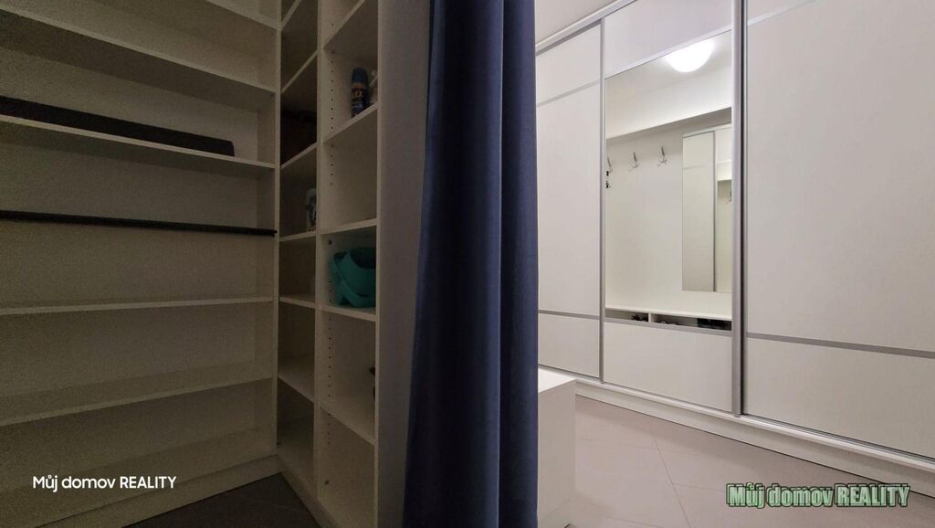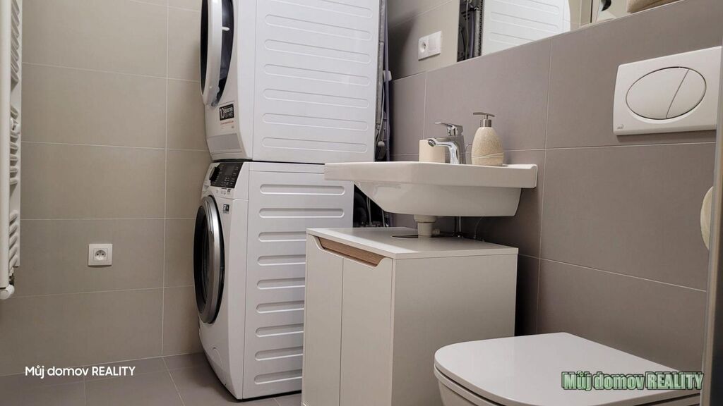 Byt je plně zařízený, součástí vybavení je pračka, sušička i dostatek úložného prostoru.