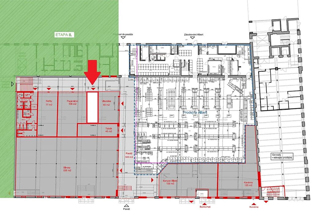 Nabízíme k pronájmu obchodní jednotku v předpokladní části Albertu. V rámci rekonstrukce obchodního centra vzniknout nové obchodní prostory a celý objekt projde postupně revitalizací.