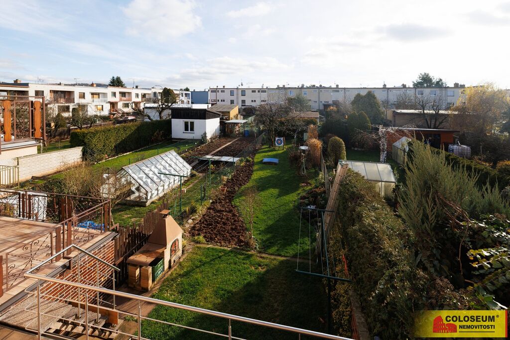Zahrada s jezírkem, skalkou a fóliovníkem poskytuje příjemné místo k odpočinku. Přístup na ni je možný z terasy v 1. NP nebo přímo ze suterénu. Parkování je zajištěno v garáži i před ní.