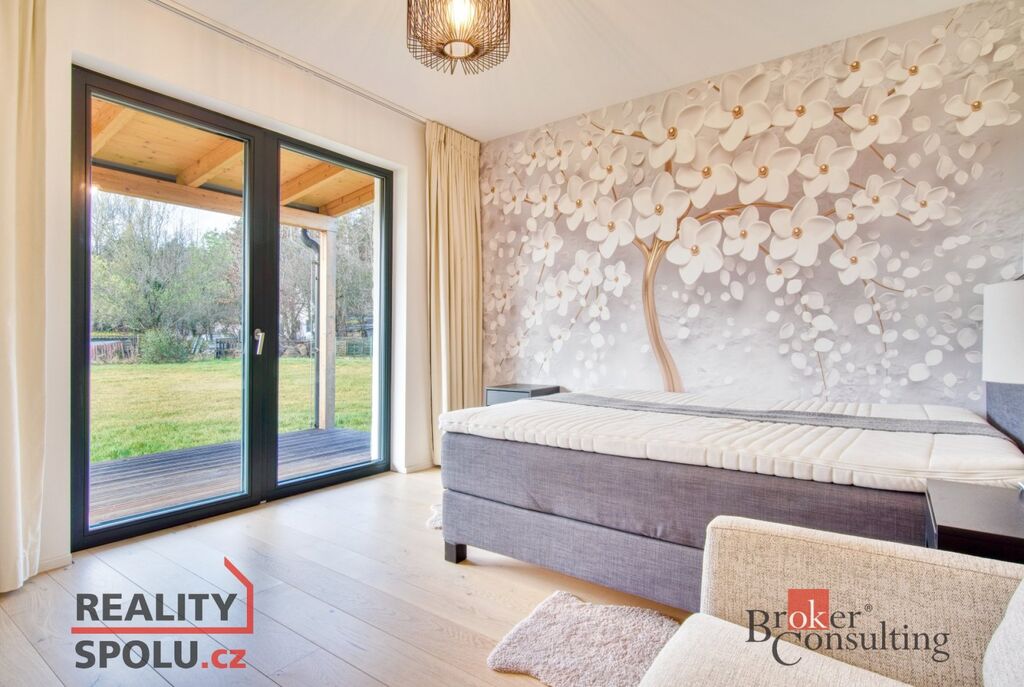 Vzorně založená zahrada poskytuje velkorysý prostor pro relaxaci, sport i rodinné aktivity. Samostatný domek se saunou, venkovní kuchyní a posezením vytváří naprosto výjimečné místo pro celoroční odpočinek.