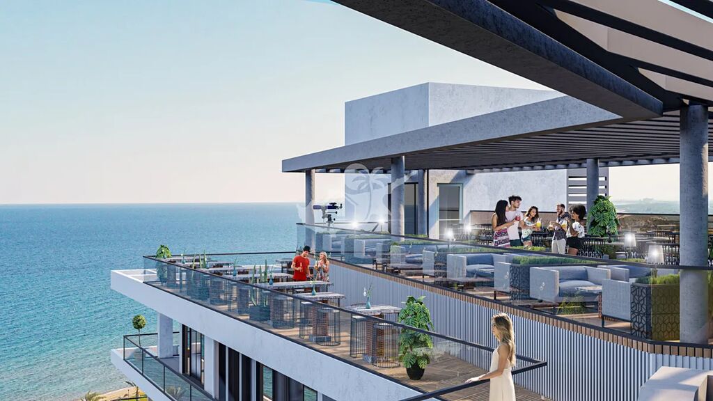 Moderní apartmán 3+kk s balkonem a krásným výhledem na moře a bazén. Nachází se jen pár kroků od pláže, nabízí soukromou pláž, venkovní bazén, fitness, sky bar a barbecue zónu.