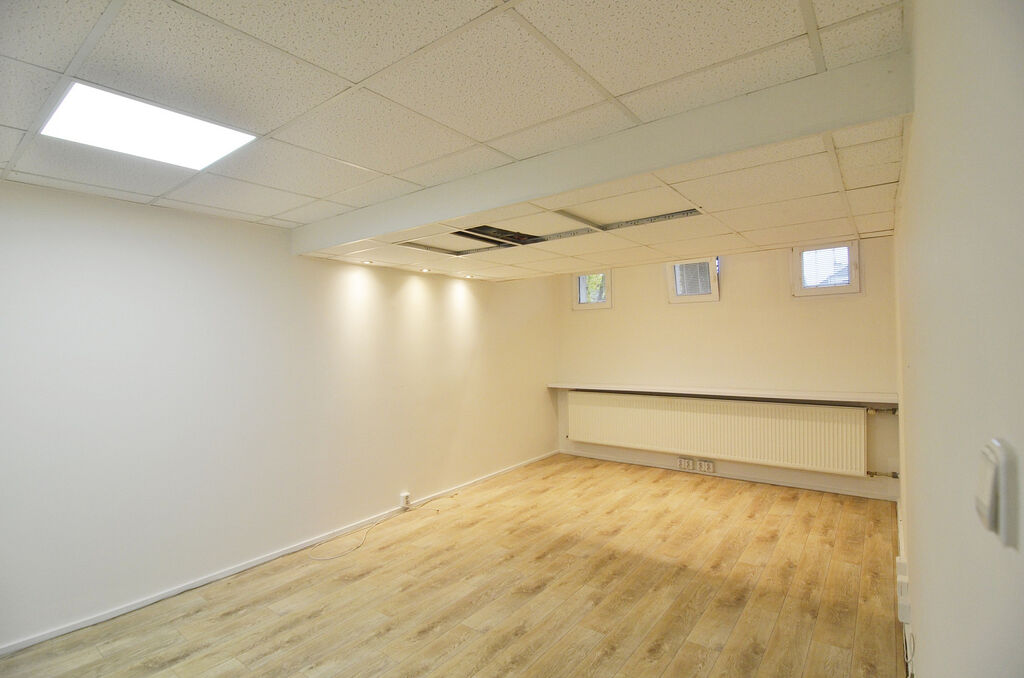 Pronájem nebytového prostoru o velikosti 64 m² v 1. PP podlaží panelového domu v Praze 4 - Kamýku. Prostor má dvě velké místnosti s menšími okny, jednu menší s kobercem a vestavěnou stěnou s úložnými prostory, koupelnu s WC a sprchovým koutem, kuchyňský kout.