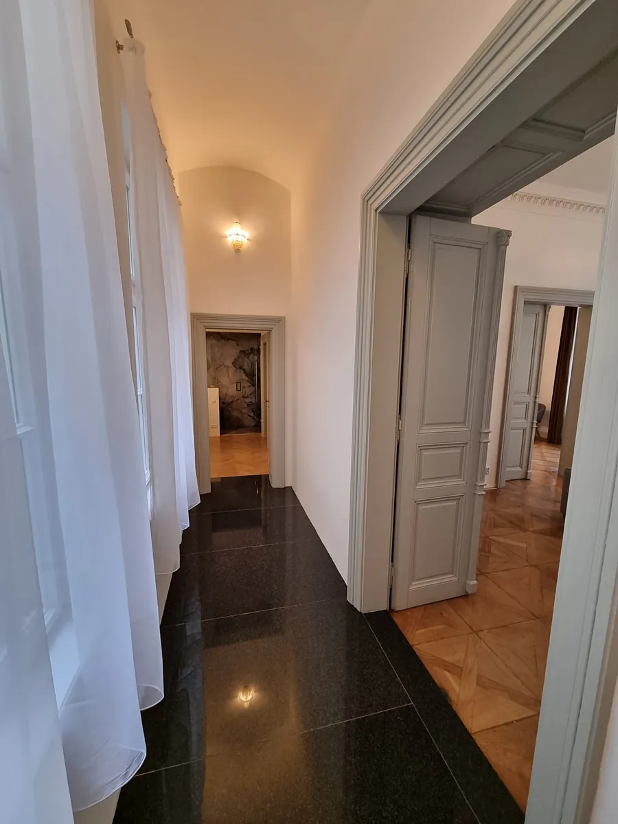 Dovolujeme si Vám nabídnout k pronájmu jedinečný a kompletně zařízený byt 3+1 po rekonstrukci, který se nachází v cihlové stavbě v samotném centru Prahy. Byt je umístěn ve třetím patře s výtahem a zajišťuje tak pohodlný přístup pro klienty, kteří vyhledávají prostorné a komfortní bydlení s vynikající dostupností městských služeb.
