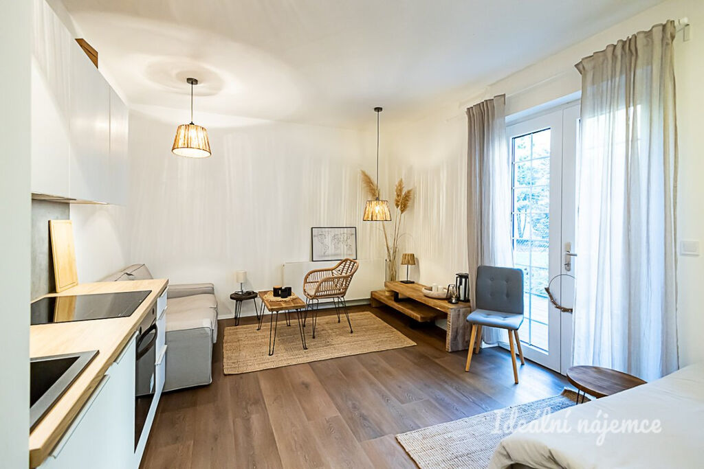 Byt je nabízen plně vybavený, což ulehčí starosti s jeho zařizováním. Kuchyně disponuje lednicí s mrazákem, elektrickou troubou, digestoří a myčkou. Hlavní obytná část je zařízena pohodlným gaučem a křeslem, konferenčním stolkem a manželskou postelí. Z obytné místností je k dispozici přímý vstup na terasu. Moderní koupelna je vybavena sprchovým koutem, umyvadlem a toaletou.