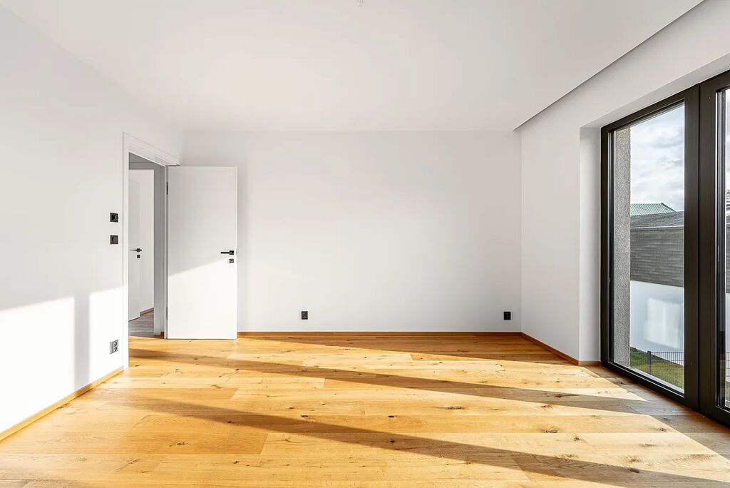 Bezfalcové dveře v bílém matu podtrhují čistý, nadčasový design.