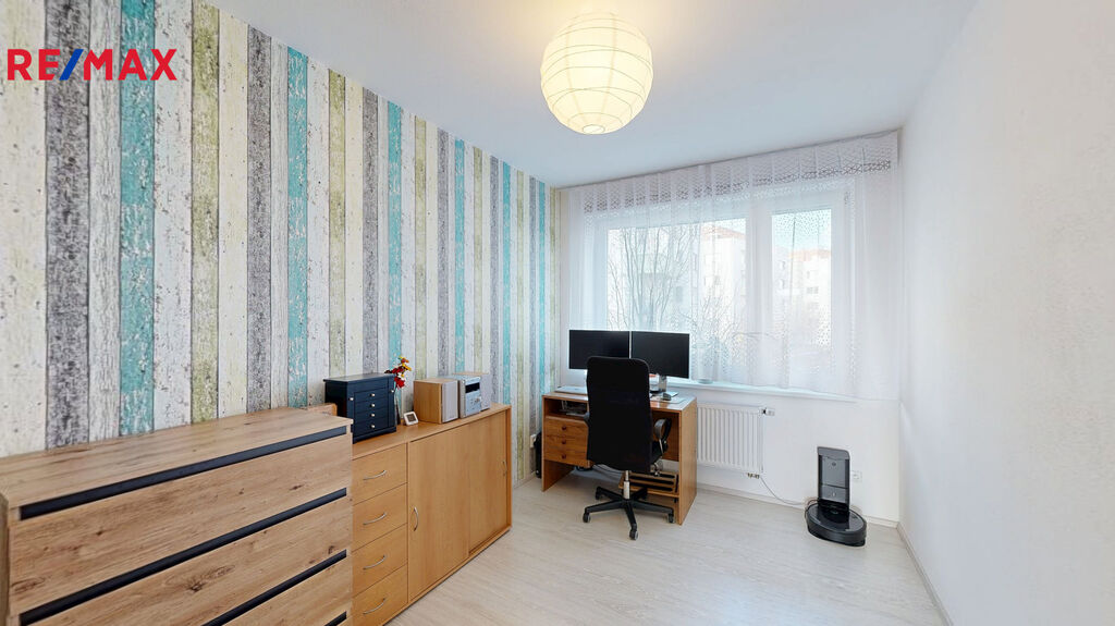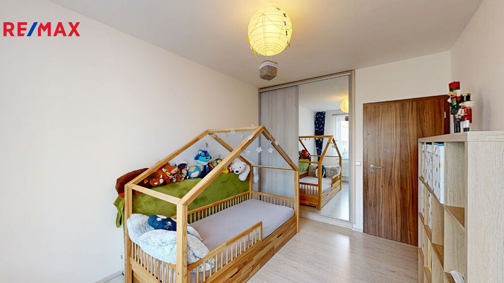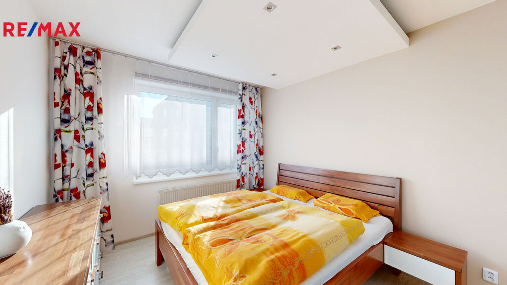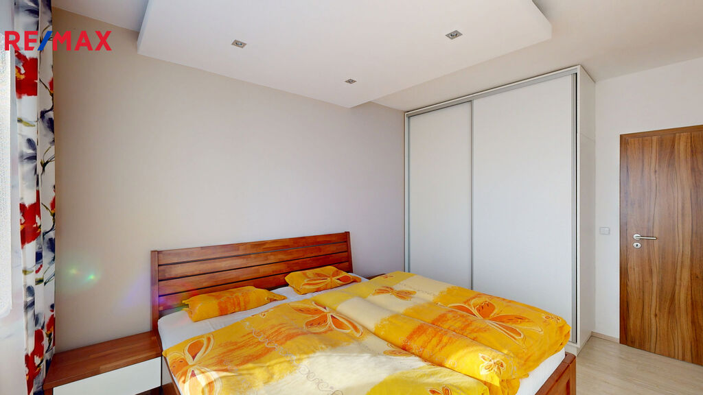 Předsíň ( s vestavěnou skříní ) 6,5 m2, ložnice 14 m2, obývací pokoj s kuchyňským koutem ( kompletně vybaveným kuchyňskou linkou na míru, včetně zabudovaných spotřebičů značky Whirlpool ) 39 m2 a vstupem na balkón ( orientovaný do klidného vnitrobloku) o výměře 3 m2, koupelna s vanou a sprchovým koutem 7 m2, samostatné WC 1,5 m2, šatna 2 m2, pokoj ( s vestavěnou skříní ) 12 m2, pokoj ( s vestavěnou skříní ) 13 m2 a vstupem na druhý balkón o výměře 3 m2, orientovaný do ulice Křepelčí.