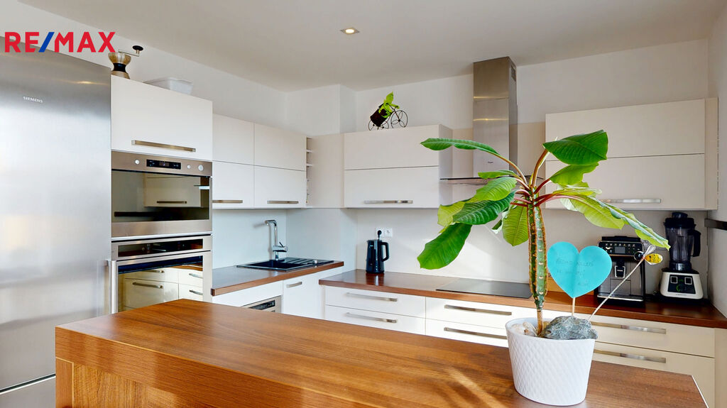 Celková užitná plocha bytu, včetně garáže a sklepa činí 121 m2, z toho obytná 100 m2.