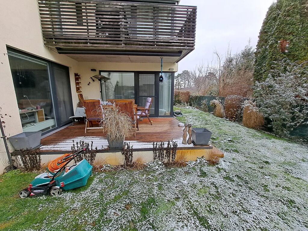 Prodej světlého moderního bytu s vlastním plynovým topením o celkové ploše 78,6 m² (vč. terasy 16,6 m²) a vlastní zahrady 95 m² se závlahou ve viladomě v klidné lokalitě Brna.