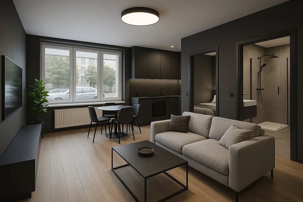Dispozici tvoří obývací pokoj s kuchyní a jídelnou, dále samostatný pokoj - ložnice a prostorná koupelnou s WC. Jednotka je řešena jako bezbariérová.