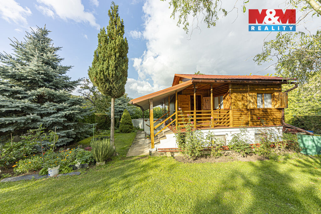 K dispozici je terasa s krásným výhledem na rozsáhlý pozemek o velikosti 1 756 m². Na pozemku se nachází vlastní vrtaná studna (voda není zavedena do chaty) a elektřina je zavedena.
