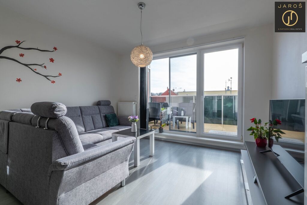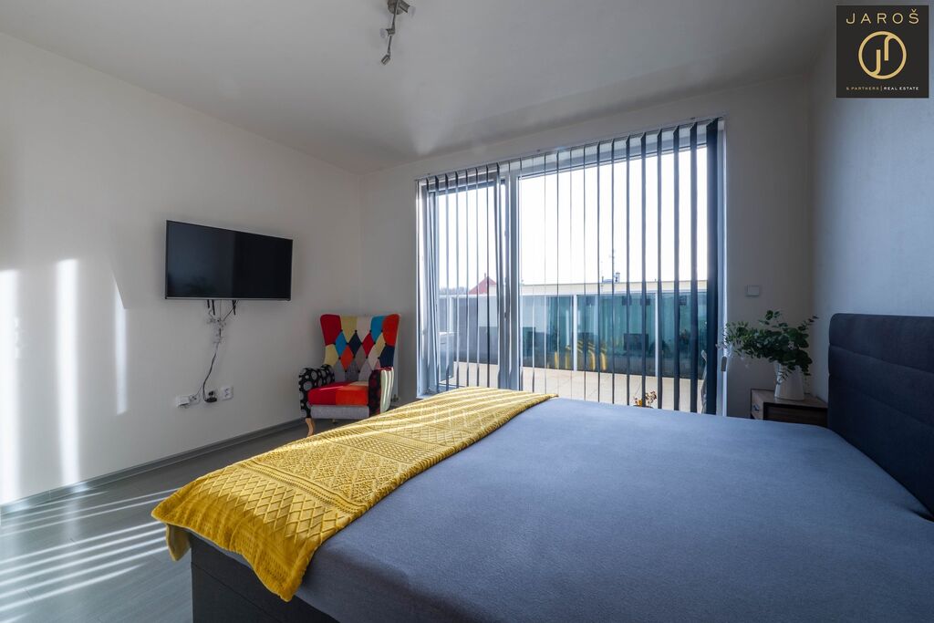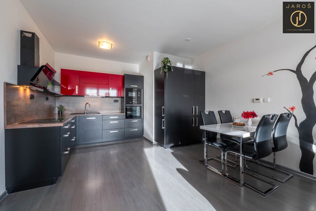 Exkluzivně Vám nabízíme k prodeji světlý byt 2kk s užitnou plochou 57,44 m2 + 16,68m2 terasa, který se nachází v ulici Zavadilka v Českých Budějovicích. Tento byt je součástí projektu Bytový dům U Boru II z roku 2015. Bytový dům je umístěn na okraji vilové čtvrti a v blízkosti lesů a rybníků, zároveň ale nedaleko občanské vybavenosti. Samotná bytová jednotka je situovaná ve 2.NP a skládá se ze vstupní chodby, ložnice, obývacího pokoje s kuchyňskou linkou a z koupelny se sprchovým koutem a toaletou. Největší předností bytu je terasa orientovaná na jihozápad, na kterou se vstupuje z obou pokojů. Na terase najdete také dvě manuální markýzy, které Vám při posezení na terase poskytnou stín, a soukromí je zajištěno orientací do vilové zástavby a tmavými fóliemi na zábradlích. Bytu vévodí moderní kuchyňská linka na míru, díky které již nejsou do bytu potřeba žádné větší investice. Do obývacího pokoje, který má 28m2, se mimo kuchyňské linky pohodlně vejde také jídelní stůl a sedací souprava. Dostatek úložných prostor v bytě je zajištěn vestavěnými skříněmi v ložnici a ve vstupní chodbě, navíc k bytu také náleží komora na patře (2,7m2). V domě je také místnost na uložení kol a kočárků.