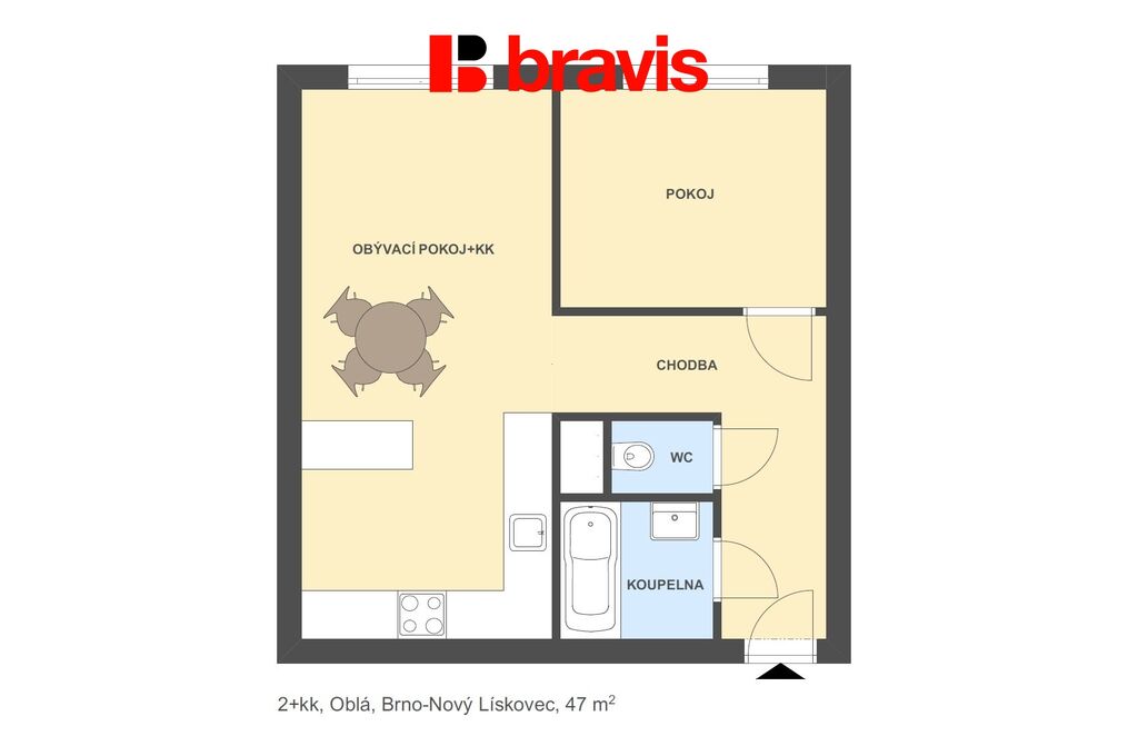 Pronájem bytu 2+kk, Brno - Nový Lískovec, Oblá, 47 m2 (ID: 2520713)