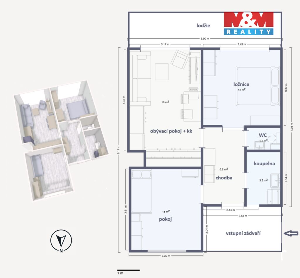 Nabízíme k pronájmu moderní byt 3+kk v novostavbě v klidné části Prahu 5 - Košíře. Byt se nachází v 5. NP zcela bezbariérového domu s výtahem. Byt má 3 neprůchozí pokoje, z toho obývací pokoj i ložnice mají vstup na velkou lodžii (10 m²). Celková plocha včetně zádveří na pavlači a lodžie činí krásných 73 m². Lodžie je orientovaná na jih, pokoj a vstup na sever, takže v létě uděláte krásně průvan. V zimě průvan netřeba, protože k tomu všemu je byt vybaven rekuperací. Byt je vybaven kuchyňskou linkou s lednicí, v koupelně najdeme pračku a sprchový kout. WC s umyvadlem je oddělené. V ceně máte dále sklepní kóji o velikosti 3 m². Možnost parkovacího stání za 2 500 Kč/měs, není však povinné. Přímo v domě se nachází LIDL, kam můžete při ranním nákupu pro kávu a pečivo dojít suchou nohou. Hned u domu je tramvajová zastávka Klamovka se spojením na metro B Anděl (jen 5 min). Skvělá příležitost k reprezentativnímu bydlení pro pár nebo pro mladou rodinu. Volný ihned!