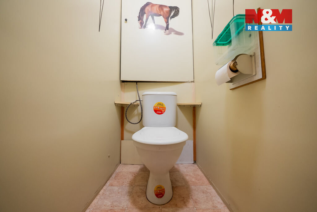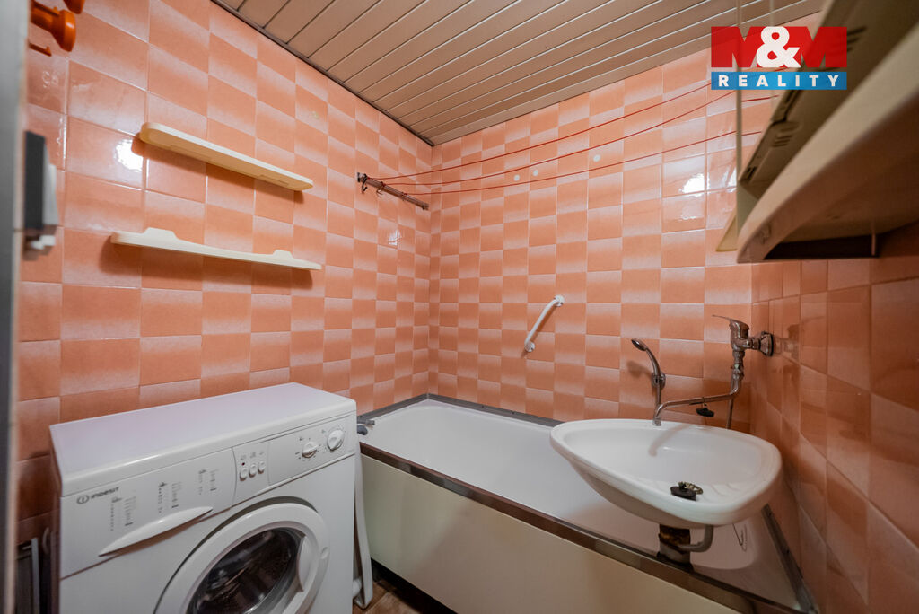 Koupelna je po úpravě, obložena keramikou, takže nabízí nejen funkčnost, ale i snadnou údržbu a pohodlí.
