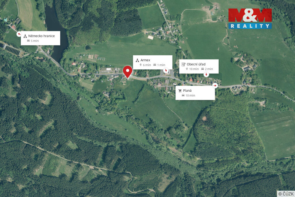Nabízíme k prodeji rodinný dům v malebné obci Broumov. Nemovitost disponuje užitnou plochou 183 m². Díky své poloze je ideální nejenom pro osoby pracující v Německu – státní hranice je vzdálená pouhých 5 minut jízdy, ale taky pro rodinu, která upřednostní pro život klidné prostředí venkova v podhůří Slavkovského lesa. Veškerou občanskou vybavenost najdete v nedaleké Plané – 10 km nebo v Mariánských Lázních – 12 km. Obě města jsou dojezdová přibližně za 15 minut autem. Do obou jezdí pravidelná autobusová linka. K domu náleží pozemek o rozloze 660 m². Je možné pronajmout od obce sousední parcelu s rozlohou 795 m². Obec Broumov je klidná, pečlivě se stará o své obyvatele a pravidelně se pořádají různé kulturní akce. Díky velkorysé dispozici domu se nabízí také jeho investiční využití – například možnost rozdělení na dvě menší bytové jednotky a následný pronájem pendlerům,