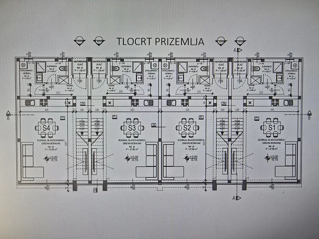 Dům S2 o ploše 99,74 m2 má dvě podlaží a je jeden ze čtyř moderních řadových domů v zástavbě. V prvním podlaží se nachází chodba, koupelna, obývací pokoj s kuchyní a jídelnou se vstupem na dvorek o ploše 33 m2. Schodištěm se dostanete do druhého podlaží kde je chodba, koupelna a 3 ložnice. Dům je kompletně zařízený a náleží mu 2 parkovací stání.