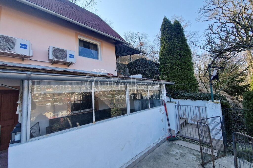 Prodej pěkné patrového domu 3+1, 75 m2 podlahové plochy, s krásným výhledem na řeku Labe a hrad Střekov, v Ústí nad Labem, části Vaňov. Pozemek je 683 m2. Dům je postavený ze smíšeného materiálu - betonu, cihle, tvárnic porotherm a dřeva. Okna a dveře jsou plastová. V přízemí domu je kuchyně, pokoj, koupelna a místnost. Na přízemí navazuje terasa 16 m2. V patře je jsou dva pokoje, předsíň, 2x místnosti a koupelna. Na horní patro navazuje plocha s bazénem. Na dvorku je plechová garáž 30 m2. Vedle domu je kůlna 16 m2. Topení je klimatizací. Voda je z nedaleké studánky. Je odsouhlasený vodovod pro danou lokalitu a měl by se nejpozději v roce 2027 zrealizovat. Klidné místo hned u lesa. Příjezd je po obecním pozemku. Hypotéku vám vyřídíme zdarma. Volejte a domluvte si prohlídku.