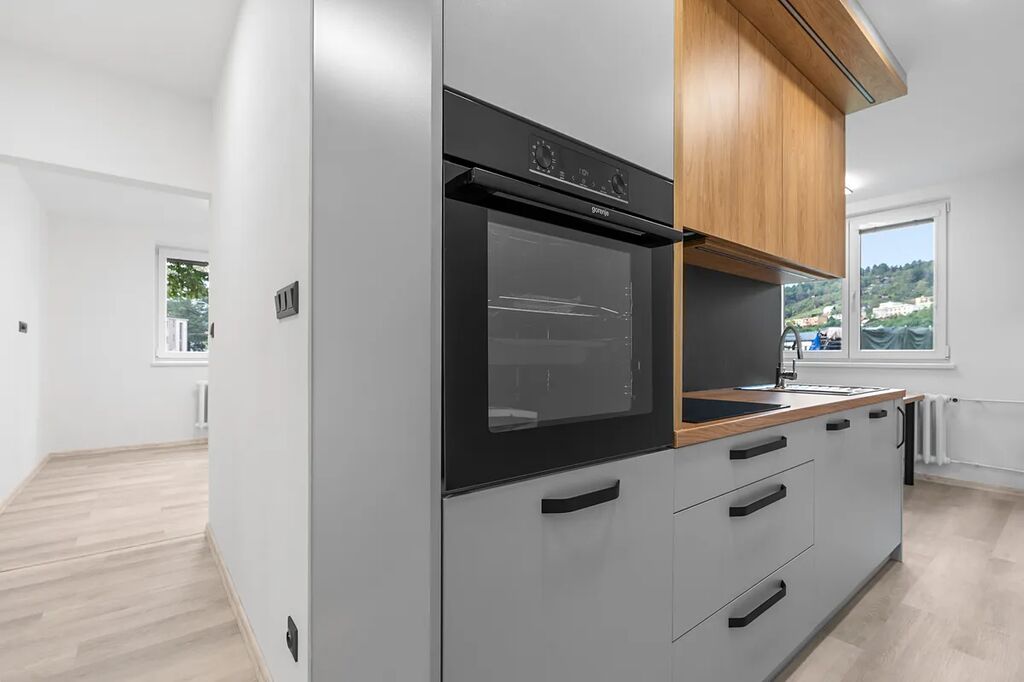 Majitelé byt opravili a navrhli tak, aby vyhovoval a našli zde nový domov majitelé, kteří již nemusí nic řešit.
