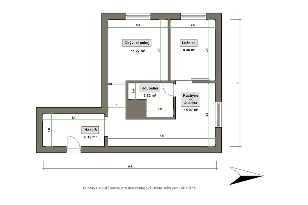 Prohlídky a návštěva bytu jsou možné po dohodě s makléřkou Martinou.