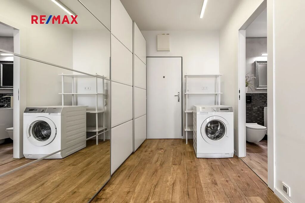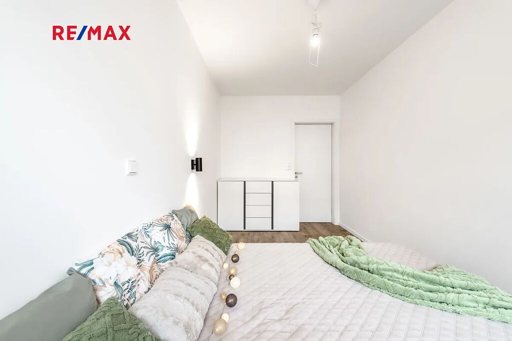 Kuchyň s obývacím pokojem je vybavena včetně na míru vyrobené kuchyňské linky s moderními spotřebiči, jako jsou trouba, varná deska, myčka nádobí a lednice s mrazákem; pohovka, kuchyňský stůl, psací stůl. V ložnici zůstává komoda (bez postele). Pro uskladnění Vašich věcí je k dispozici velká šatní skříň. Pračka se nachází na chodbě. Z obývací části vstupujeme na prostorný balkon. Balkon je vybaven stolem, židlemi a zelení.
