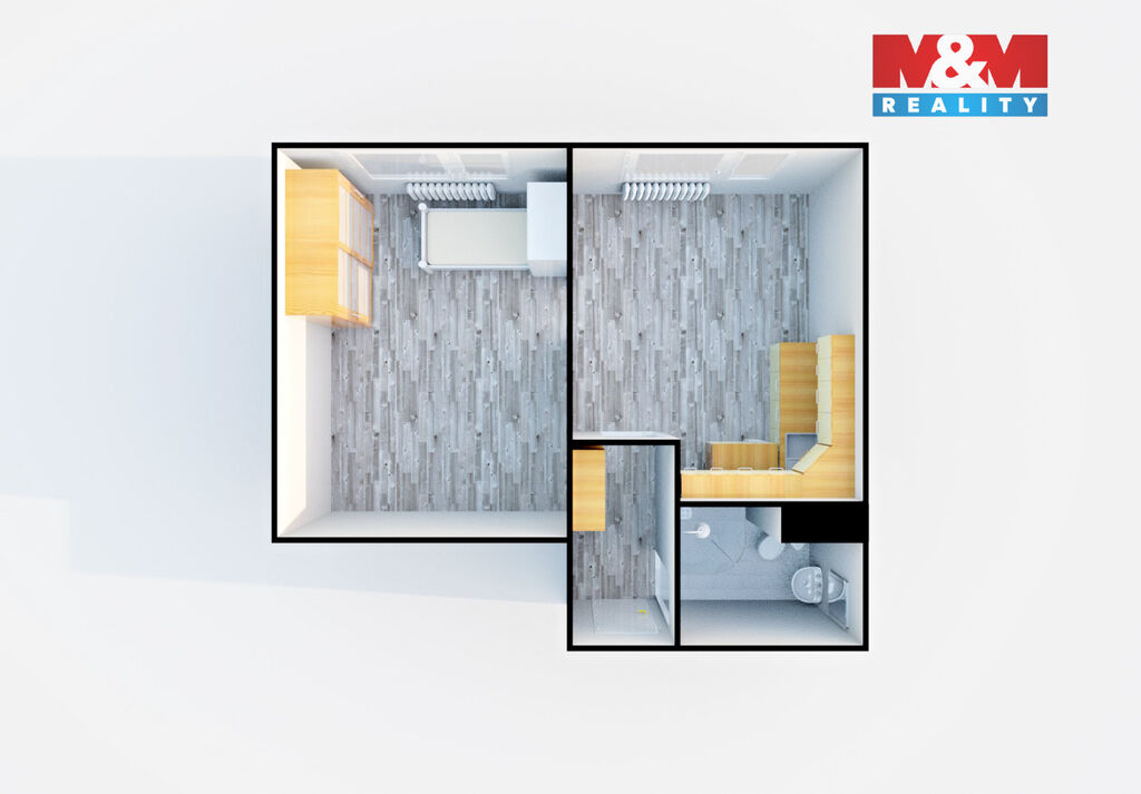 Nabízíme pronájem bytu o dispozici 1+1 a výměře 35 m2 ve zvýšeném přízemí (úroveň 1. patra) panelového domu v klidné část obce Děčín - Želenice, ul. Školní. Byt má plastová okna (žaluzie), kuchyňskou linku (bude měněna ve 2026) s dvouplotýnkovou sklokeramickou deskou a dřezem a prostorem pro myčku nebo pračku. V koupelně je sprchový kout společně s toaletou a umyvadlem. V pokoji jsou k dispozici jedna šatní skříň, vestavěná postel ve skříni (90 cm x 190 cm) a jedna policová skříň v předsíni. Dům je zateplený, s výtahem. K dispozici sklepní kóje a přípojka na internet a kabel. TV. Možná dohoda o úpravách bytu nájemníkem. Přímo za domem potraviny, pár metrů pak mateřská a základní škola s knihovnou a také autobusová zastávka. Měsíční nájem 6.700,-Kč + zálohy na služby 2.254,-Kč (1 osoba), + záloha na el. (dodavateli), vratná kauce 13.400,-Kč a provize RK 6.700,-Kč. Byt ihned volný. Bude vyžadována bezdlužnost nájemníka a také pracovní smlouva.