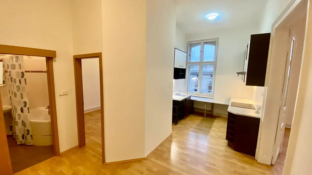 Byt je nyní po rekonstrukci, nové spotřebiče v kuchyni, je celý nově vymalován na bílo, renovované původní velké dvoukřídlé dveře.