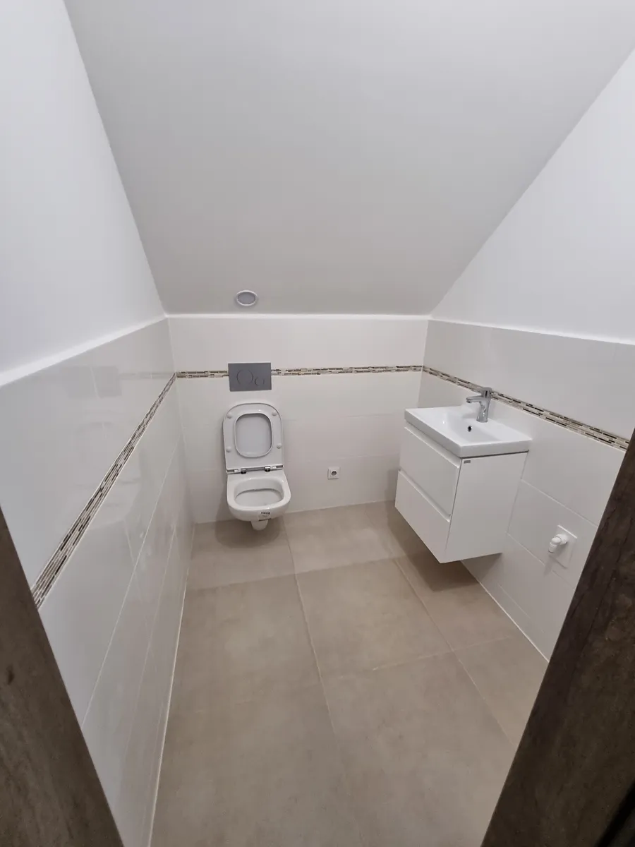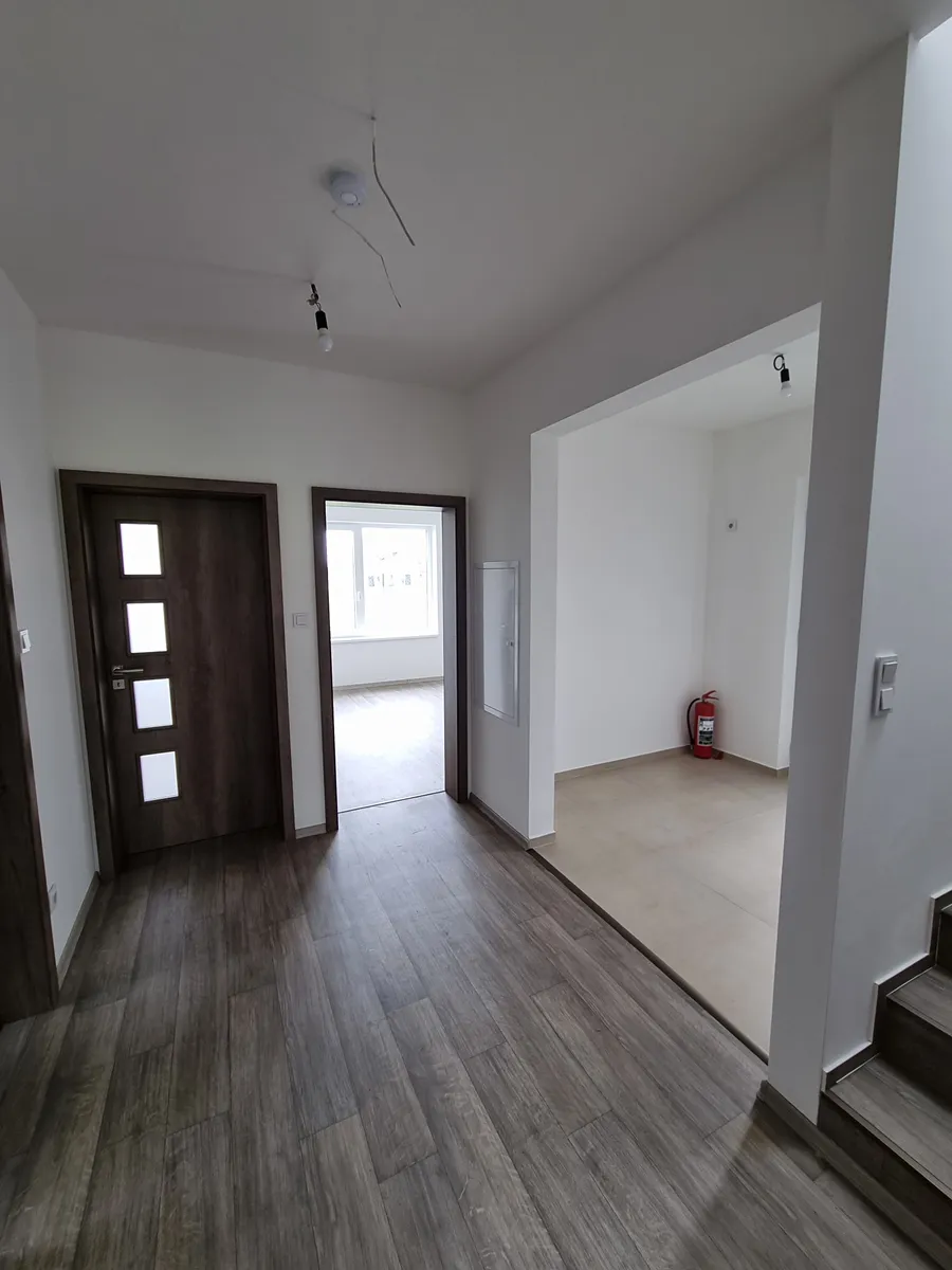 Dispozice přízemí domu je tvořena vstupní předsíní, koupelnou, dvěma samostatnými pokoji a dále prostorným obývacím pokojem s kuchyňským koutem. Z obývacího pokoje je možné vstoupit na terasu francouzským oknem. V patře domu se nachází dvě velmi prostorné ložnice, samostatné WC, technická místnost a koupelna prosvětlená střešním oknem.