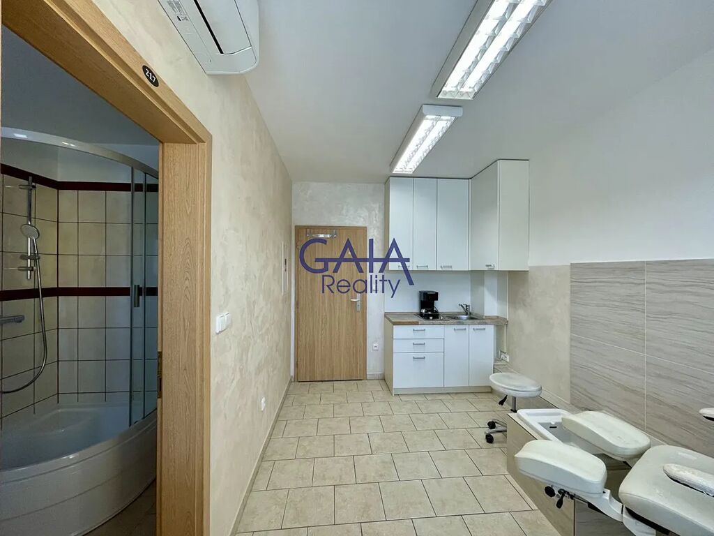 Prostory jsou vhodné pro širokou škálu služeb s výjimkou kadeřnictví a tetovacího studia, které už v budově fungují. Do prostor je přivedena voda a k dispozici je i pedikérské křeslo. Prostory disponují WC a sprchou. Velkou výhodou jsou samostatná měřidla energií, která umožňují přesné vyúčtování uhrazených záloh. Prostory jsou k dispozici ihned. Předmět nájmu je na přiloženém půdorysu označen č. 216 a 217.