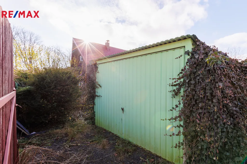 Rovinatý pozemek o výměře 674 m² je snadno udržovatelný, takže víkendy netrávíte prací, ale odpočinkem. Najdete zde kryté posezení pro grilování, dřevěnou kůlnu na nářadí a plechovou garáž.