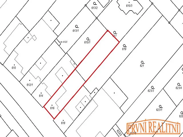 - na ulici Brodská, šířka pozemku je 11,5 metru
