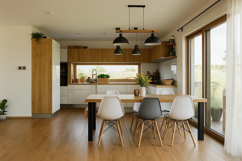 Vnitřní uspořádání splní očekávání i náročných zákazníků hledajících pěkné, moderní bydlení s dostatkem prostoru. Dům o užitné ploše 94,3 m² nabízí velkorysý obývací pokoj s kuchyňským koutem a třemi východy na terasu. Vchod na terasu je zajištěn bezprahovým hliníkovým HS portálem o šířce 3 metry. Dále pak 3 pokoje s možností vstupu na zahradu. Praktické řešení doplňuje technická místnost. V domě dále naleznete prostornou koupelnu s nadstandardním vybavením a samostatnou toaletu.