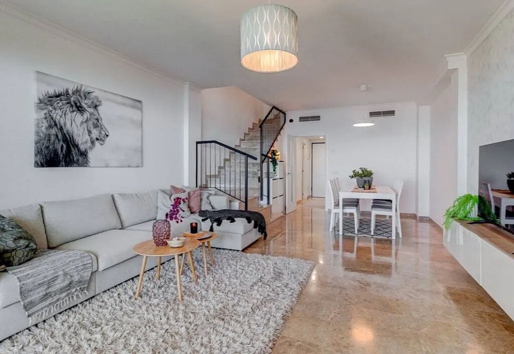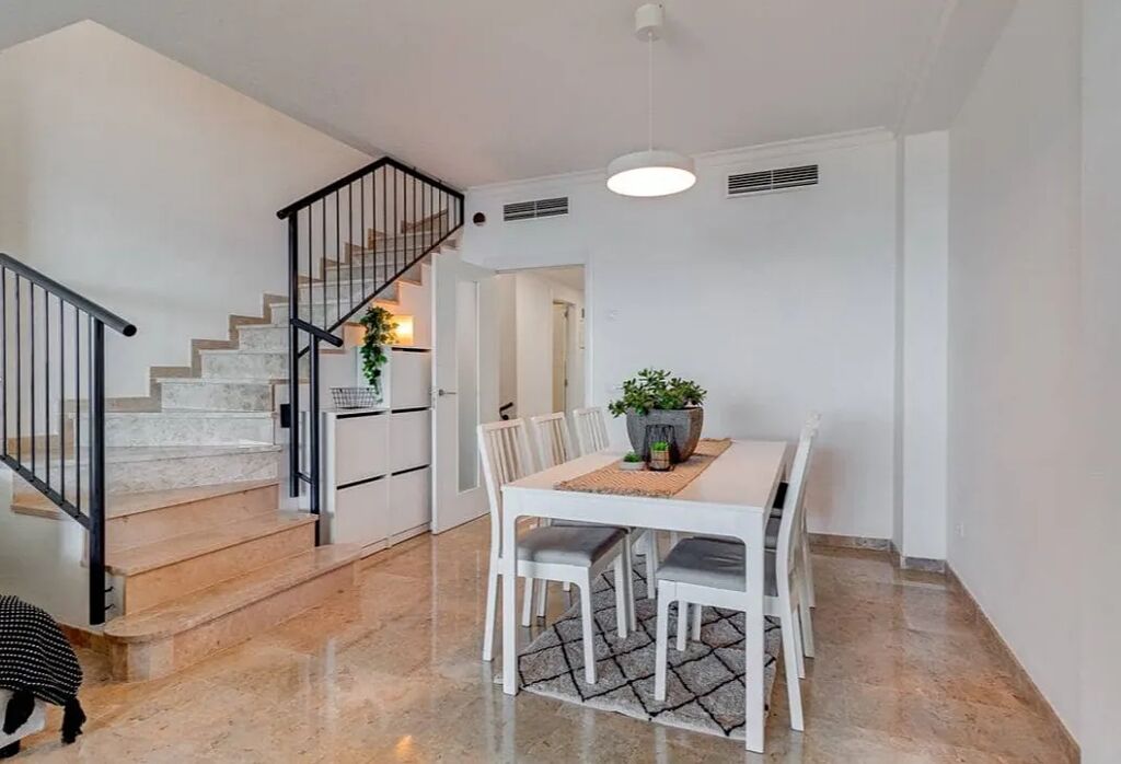 Tento prostorný třípatrový řadový dům s panoramatickým výhledem na oceán a na ostrov La Gomera se nachází v klidné a vyhledávané lokalitě Puerto de Santiago, Santiago del Teide. Nemovitost je součástí moderního, perfektně udržovaného rezidenčního komplexu. Dům nabízí vysoký standard provedení, světlé a prostorné interiéry, dvě terasy s dechberoucím výhledem a kompletní vybavení. K dispozici jsou tři ložnice s možností vytvoření dalšího pokoje v přízemí, dvě kompletní koupelny s vanou a také samostatné WC pro hosty. Součástí domu je prostorný a světlý obývací pokoj a samostatná zrekonstruovaná kuchyně. V celém domě jsou mramorové podlahy. K dispozici je velká soukromá garáž s úložným prostorem a celý dům je součástí moderního rezidenčního komplexu s několika bazény, z nichž hlavní je vyhřívaný. Velkým benefitem je platná licence VV a úspěšně fungující turistický pronájem, který generuje stabilní výnosy. Prodává se včetně nábytku, elektrospotřebičů, licence VV a aktivních účtů na platformách krátkodobého pronájmu — ideální jak pro vlastní bydlení, tak pro investici s okamžitým příjmem. Roční daň IBI činí 568 € a měsíční poplatek za komunitu je 102 €.