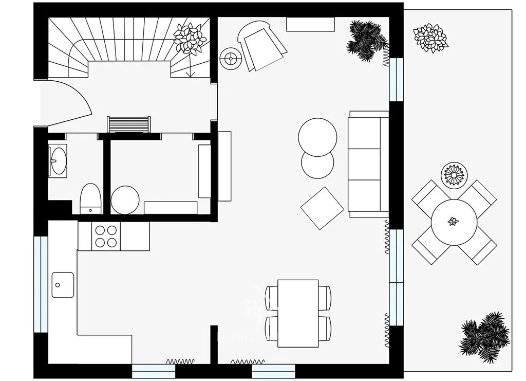 Zahrada, která čeká na vaše nápady – ať už si ji proměníte v zelenou oázu, rodinné hřiště nebo místo s bazénem. Přímý vstup z obýváku propojuje vnitřní a venkovní prostor. Komfort doplňuje parkování pro dvě auta přímo před domem.