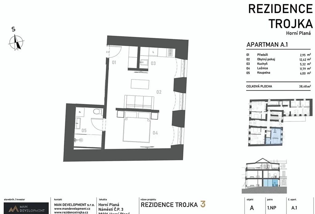 Stav: kompletně dokončeno "na klíč" včetně nábytku, kuchyňské linky i parkovacího stání