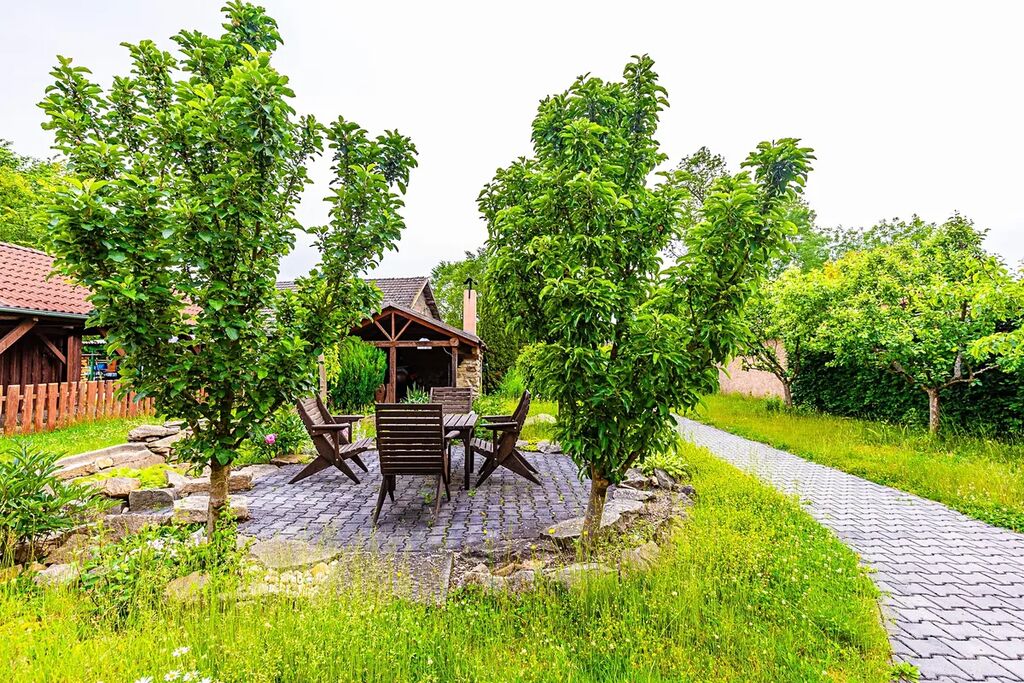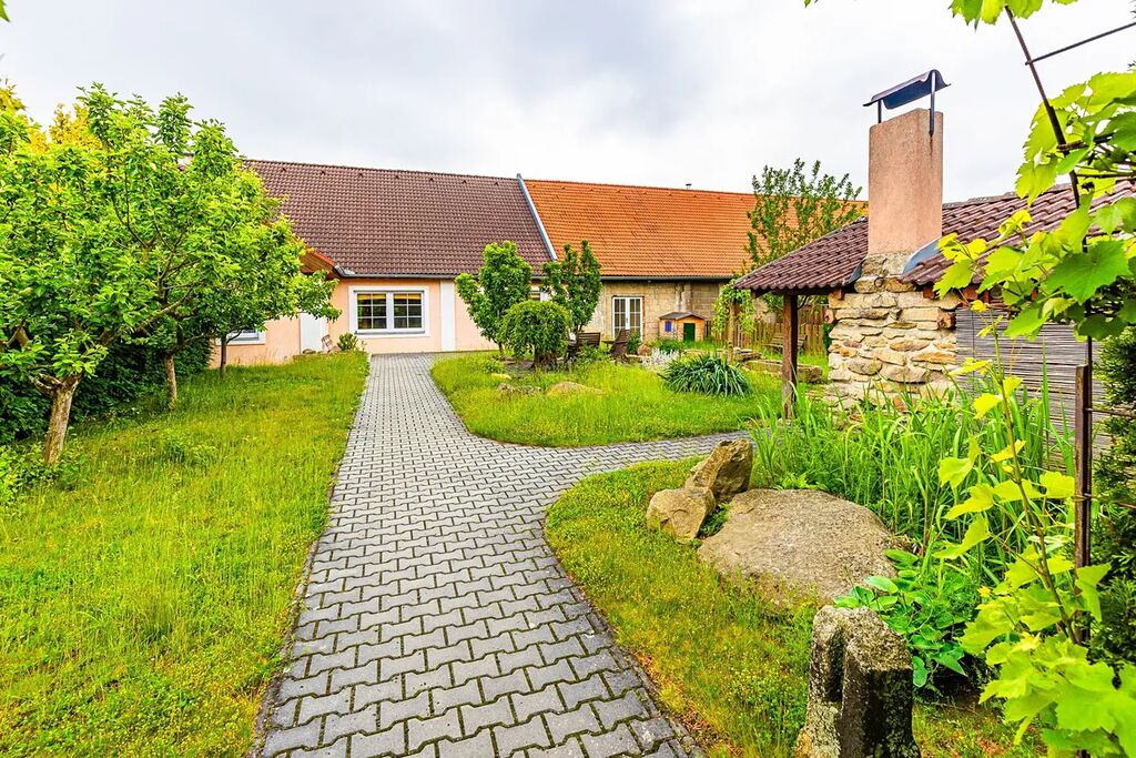 V malebném kraji rybníků, kousek od starobylého města Jindřichův Hradec a CHKO Třeboňsko v malé obci Horní Skrýchov se nachází menší rodinný dům s krásnou zahradou a stodolou.