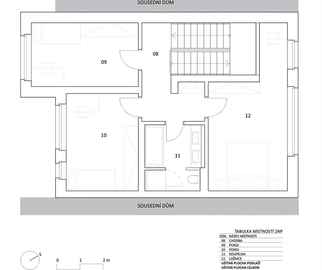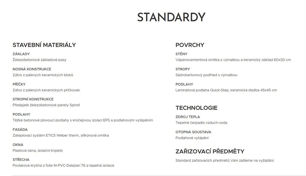 Na domě je kladen důraz na praktičnost a šetrnost. Vytápění zajišťuje tepelné čerpadlo vzduch-voda do podlahového vytápění.