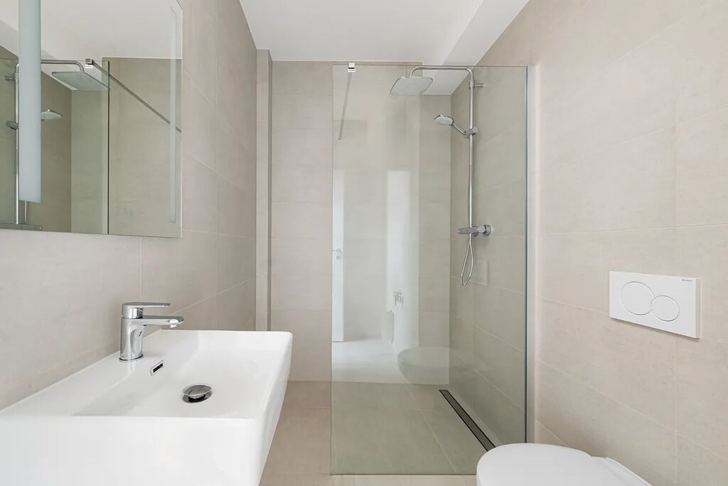 Nové rozvody, dlažby a obklady, kvalitní dřevěná podlaha, interiérové dveře, sanita v koupelně, příprava na osazení kuchyňské linky.