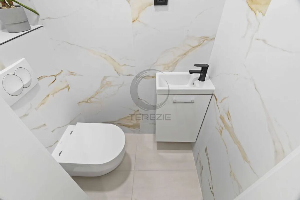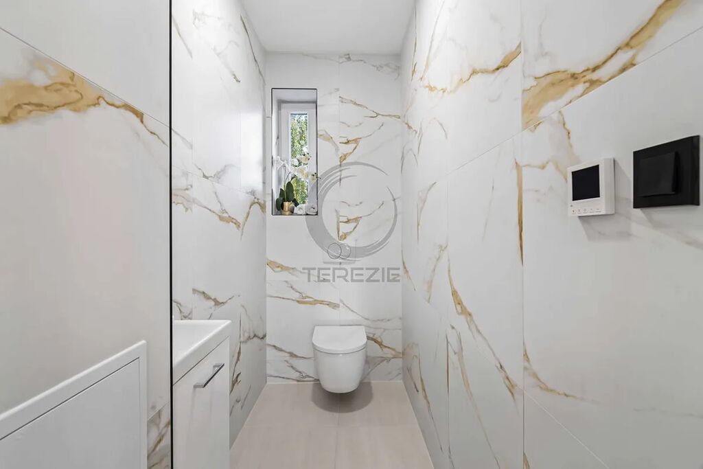 - moderní kuchyňskou linku s vestavěnými spotřebiči (myčka, lednice s mrazákem, indukční varná deska, horkovzdušná trouba)